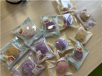 Meanwhile, the mooncake-making area was separated into four groups. Each group was provided with the necessary ingredients and food coloring to make their own mooncakes.