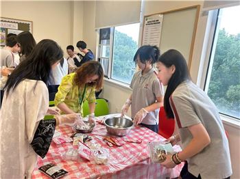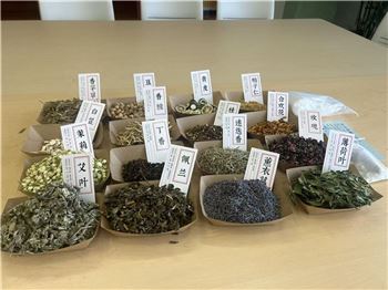Nearby, students were given small cloth bags to make a scented sachet using a mixture of aromatic herbs provided.